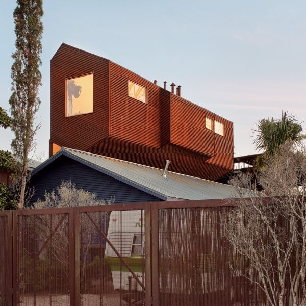 Perpanjangan rumah asimetris berlapis baja yang lapuk ini bertengger dua sentimeter di atas bungalo keluarga di Austin, sesuai dengan namanya. Arsitek Nicole Blair ditugaskan untuk memperluas ruang hidup penghuni tanpa mengorbankan taman belakang rumah yang ada.
