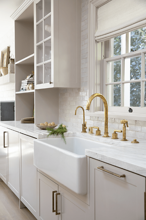 Wastafel bergaya rumah pertanian, juga dikenal sebagai wastafel celemek, memanjang hingga tepi meja Anda. Wastafel jenis ini umumnya digunakan pada dapur bergaya farmhouse klasik atau rustic dan bisa didesain dengan single bowl atau double bowl.
