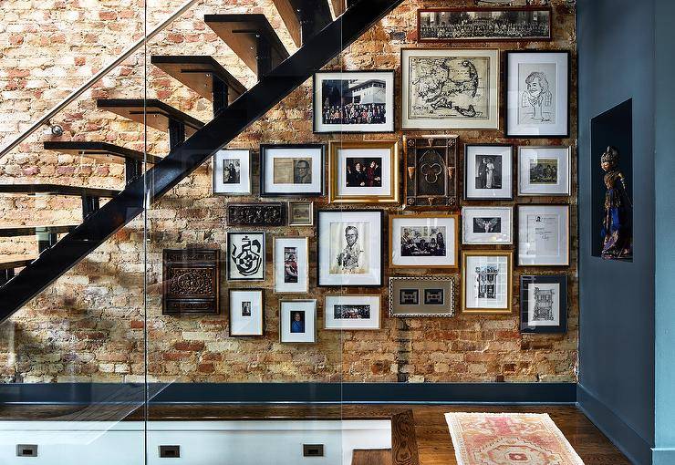 Jika Anda memiliki ruangan, Anda juga dapat membuat kolase dinding yang bagus di bawah tangga!