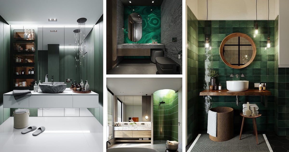 - 0.14 14. Dekorasi kamar mandi hitam dan hijau membentuk ruangan dengan kedalaman yang luar biasa.