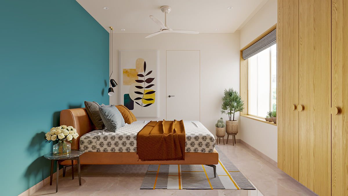 Lukis percikan pagi yang segar dengan warna biru aqua dan tarik aksen kuning untuk membuat Anda bersemangat. Dasarkan tampilan dengan beberapa elemen cokelat tanah.