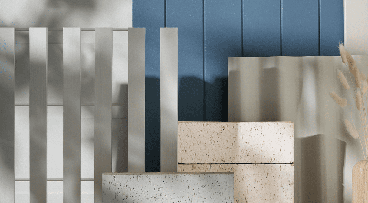 Terinspirasi oleh alam dan dirancang untuk menyatu dengan lanskap, palet eksterior ini menggabungkan warna bersahaja yang diredam dari Wattyl Colorbond Pale Eucalypt dan Solagard Light Earth, di samping Dhimba. Tekstur alami yang indah dari PGH Bricks Essentials Heathwood, disertai dengan warna abu-abu yang sejuk dari PGH Bricks Morada Ceniza Linear, memberikan keseimbangan antara arsitektur tradisional dan keindahan palet warna alami Australia.