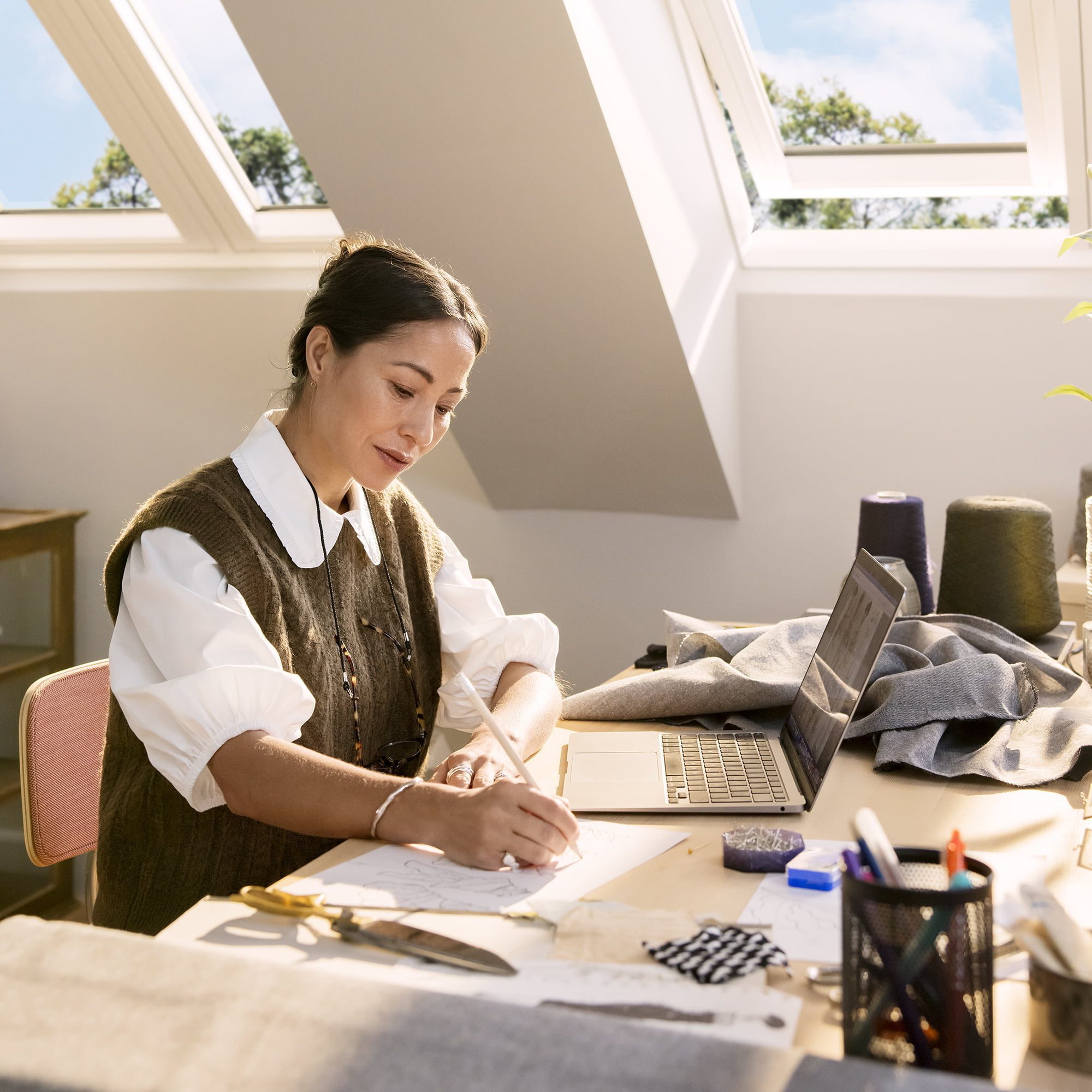 Bawa cahaya matahari ke dalam ruangan dengan tepat dan segala sesuatu yang lain sangat cocok. Ruangan terlihat lebih besar, terasa lebih cerah, suasana hati Anda terangkat dan kreativitas Anda meningkat – semuanya sangat penting saat Anda bekerja dari rumah. Terlepas dari gaya mana yang Anda pilih, Anda dapat yakin bahwa jendela atap akan mengubah ruangan Anda menjadi tempat favorit – baik untuk jam kerja maupun untuk bersantai.