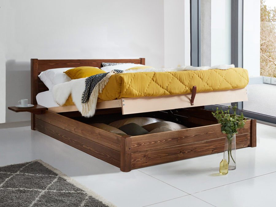 - Tempat Tidur Dipan – Diangkat dari tanah, terdapat laci geser di bawah kasur, ideal untuk menyimpan quilt, selimut, dan seprai. Sangat populer di apartemen karena kapasitas penyimpanannya, biasanya terbuat dari kayu.
