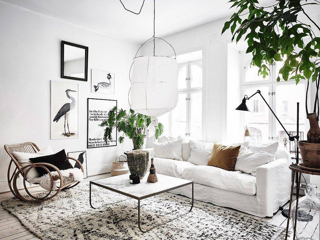 Beberapa gaya memiliki karakteristik umum. Misalnya, baik Skandinavia maupun Boho sama-sama menyukai bahan dan tekstur alami. Poin timbal balik ini memungkinkan Anda untuk memadukan gaya dengan mulus untuk tampilan yang kohesif. Kami menyukai bagaimana ruang ini meminjam bagian yang sama dari setiap gaya, menciptakan hubungan yang solid dengan karakteristik terbaik. Kursi ayun rotan terinspirasi dari Boho, sedangkan meja minimalis lebih berorientasi Scandi. Namun, karpet bertekstur dan banyak tanaman hijau adalah standar untuk kedua gaya tersebut.