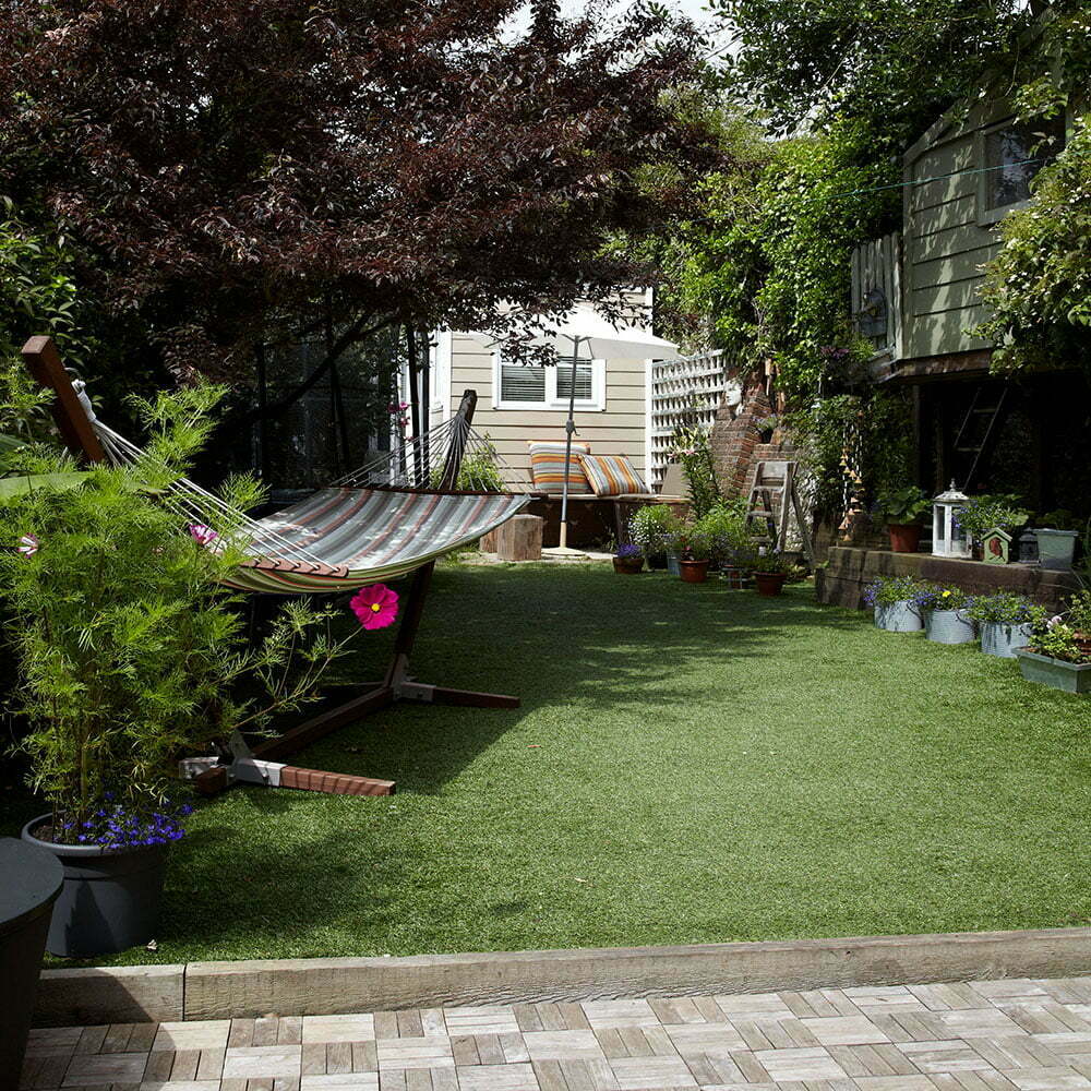 Rumput palsu membuat alternatif rumput rumput praktis di taman perumahan di mana kotoran berlumpur ditinggalkan oleh anak-anak yang mencintai olahraga. Atau sangat cocok jika Anda memiliki lahan kosong yang berada di bawah pohon rindang di mana rumput asli tidak akan tumbuh.