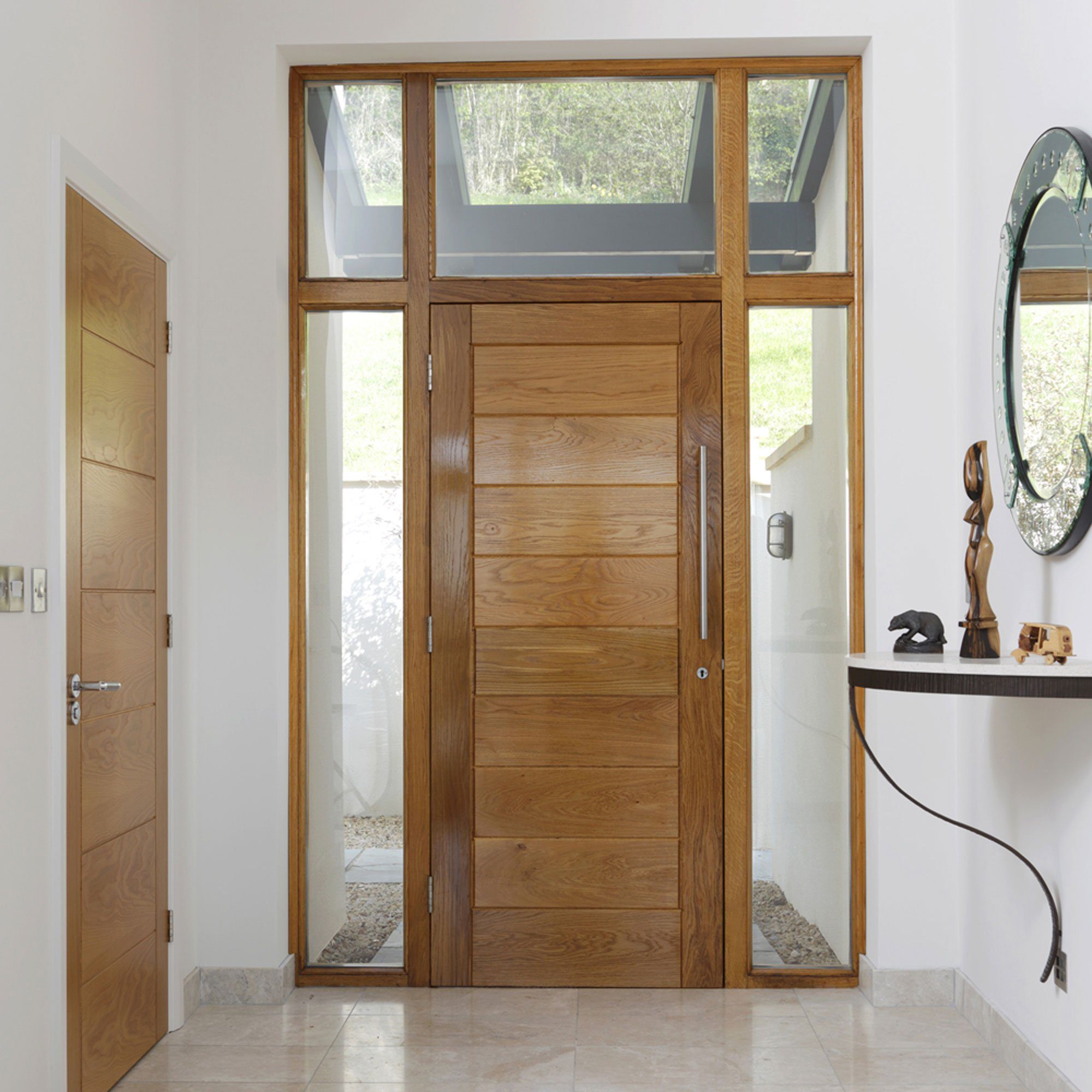 Kaca pengaman (dikeraskan atau dilaminasi) sering dibutuhkan di pintu depan. Anda dapat menemukan persyaratan dalam Peraturan Bangunan.