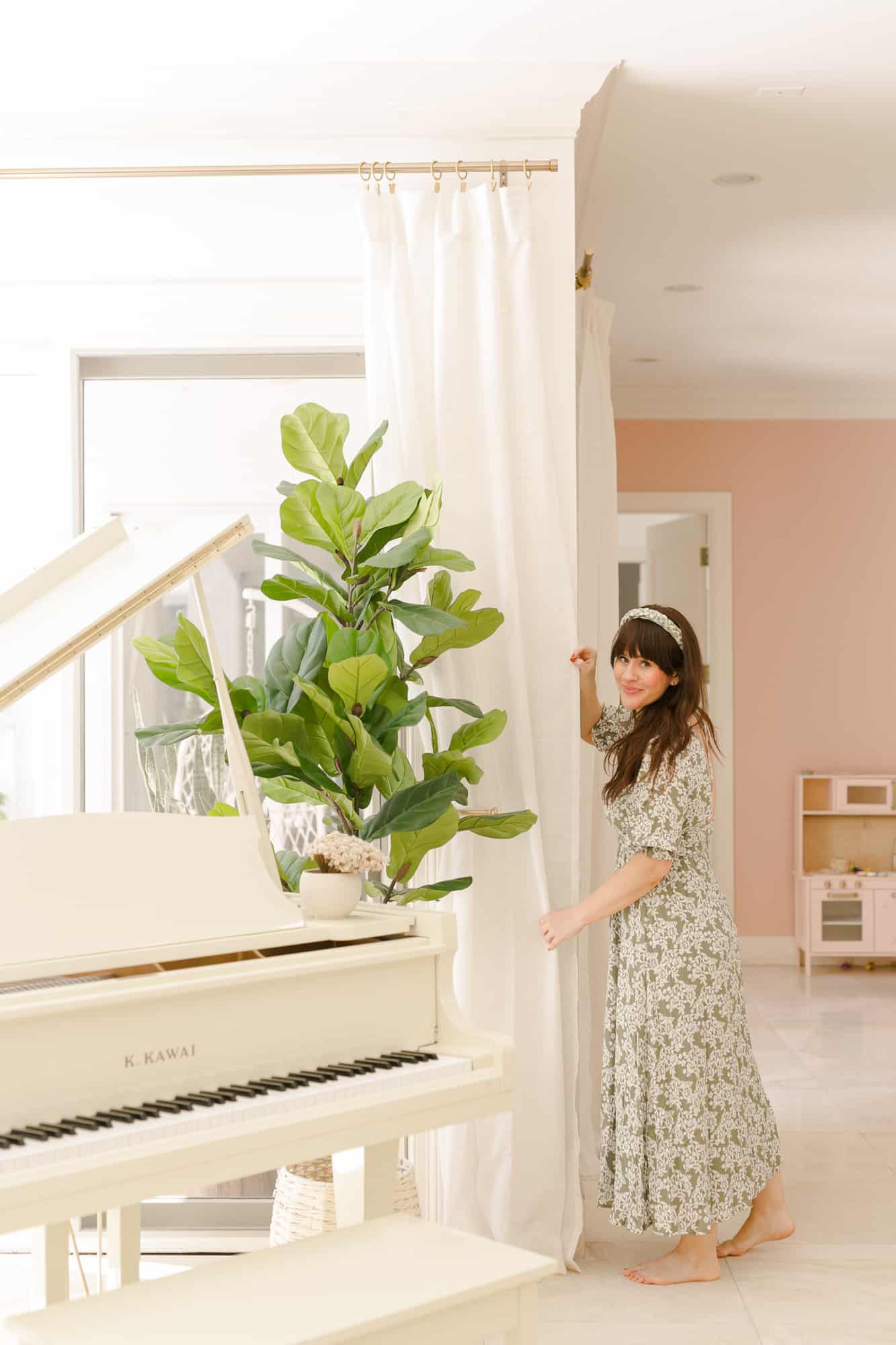 Saya mengerti tergoda untuk lari ke Target, tetapi gorden yang mereka jual seringkali terlalu pendek untuk sebagian besar ruangan, dan mereka akan membuat jendela Anda tampak lebih kecil.