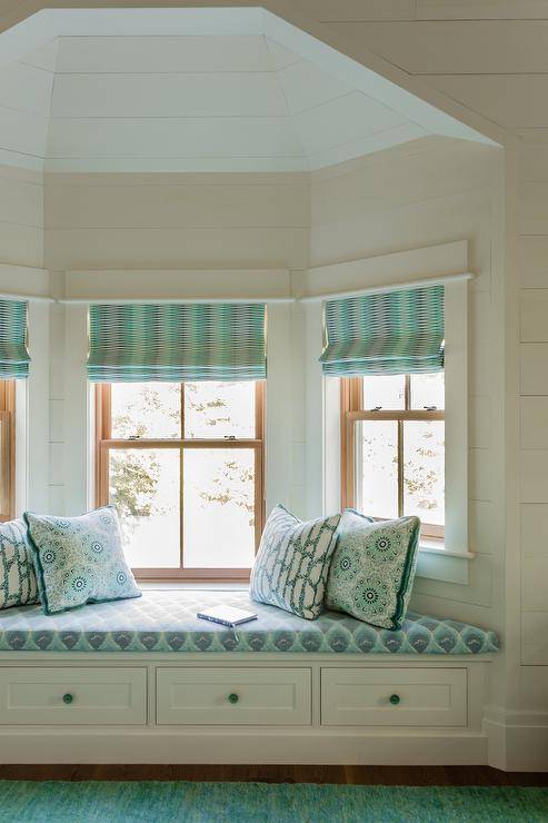 Jendela teluk sering membutuhkan perawatan jendela yang unik, seperti gorden atau daun jendela khusus. Anda juga bisa menggunakan kombinasi perawatan, seperti kerai atau shade di bagian bawah, dan kelambu atau gorden di bagian atas.