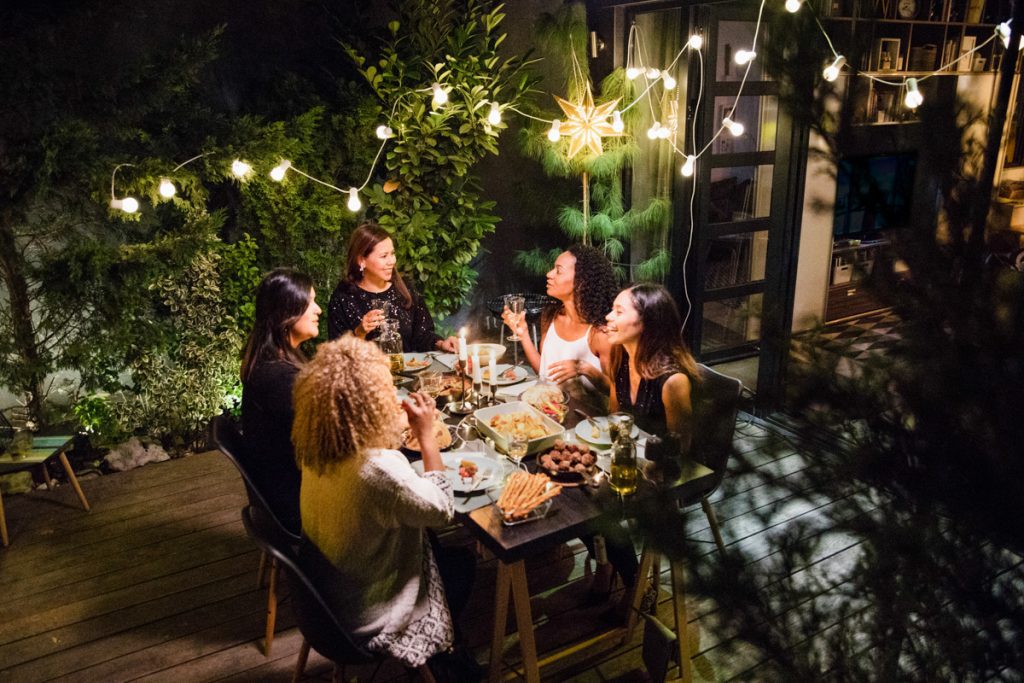 Mungkin Anda telah berkembang menjadi juru masak rumah yang fantastis dalam beberapa tahun terakhir. Jadikan tujuan bersantap al fresco di halaman belakang atau teras Anda untuk membumbui malam Anda di rumah. Untuk mengubah makanan malam Anda, selain meja dan kursi makan di luar, letakkan permadani luar ruangan dan ikat seutas lampu atau buat lampu gantung luar ruangan Anda sendiri.