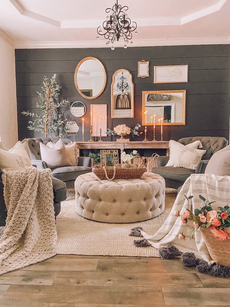 Jika Anda memiliki dinding kosong dan membosankan di suatu tempat di rumah Anda, ini akan menjadi titik awal yang sangat baik. Mungkin Anda ingin menghias pintu masuk dan memamerkan koleksi cermin bekas Anda. Atau, Anda dapat meletakkan meja konsol di ruang tamu dan membuat pernyataan yang berani. Kami menyukai bagaimana dinding galeri cermin yang elegan ini ternyata. Dinding shiplap hitam membuat bingkai emas menonjol, sementara berbagai bentuk menambah daya tarik visual.