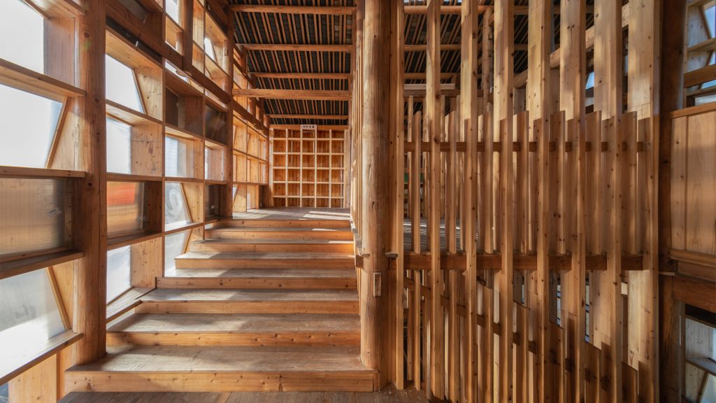 “Budaya Dong berhubungan langsung dengan kayu, jadi kami memutuskan untuk menggunakan kayu lokal China fir, kayu lunak yang asli daerah tersebut,” kata Condition_Lab.