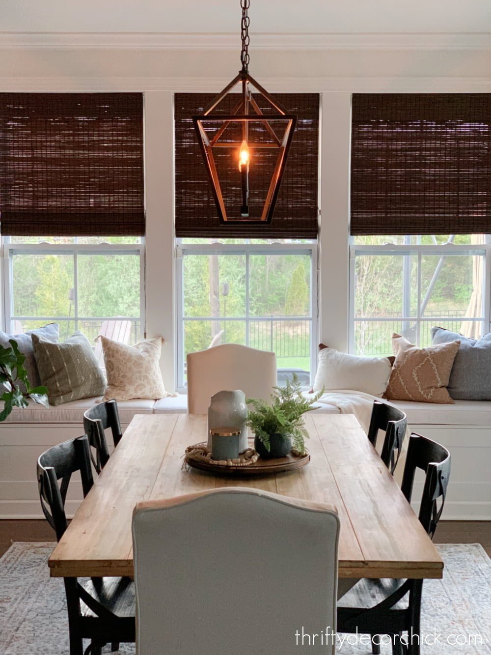 Mengubah dekorasi dan membersihkan ruang makan kami yang cantik dengan kursi dekat jendela besar.