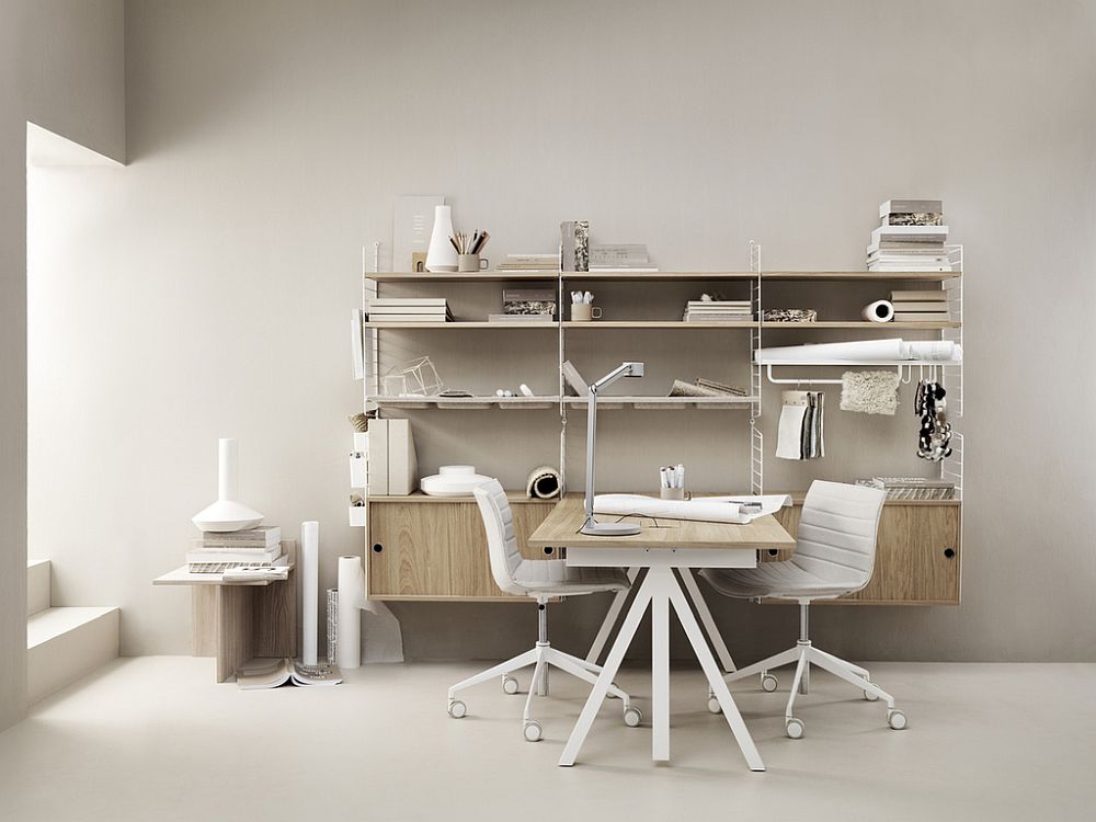 Desain kantor rumah telah dikenal di dunia dekorasi modular selama beberapa dekade dengan sistem rak String yang ikonik. Integrasikan sistem ini ke dalam pengaturan kantor bersama dengan meja duduk khusus yang dapat disesuaikan. Desain kantor rumah dirancang oleh Björn Dahlström dan Anna von Schewen adalah penghenti acara mutlak. Proses desain sistem lebih dari sekadar estetika. Namun mempertimbangkan kesehatan jangka panjang dari mereka yang bekerja di meja selama 9 jam atau lebih setiap hari.