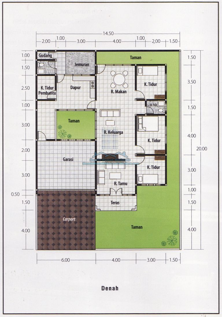 Denah Rumah Sederhana 1 Lantai 3 Kamar Tidur Denah Rumah Rumah Desain