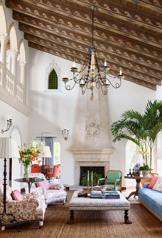 Mempertahankan arsitektur Kebangkitan Mediterania asli di rumah cantik di Palm Beach ini adalah keputusan terbaik yang bisa dibuat oleh pemilik dan desainer Mark D. Sikes. Langit-langit Cypress, pagar logam, jendela tiruan kaca-botol dekoratif, dan bahkan lambang keluarga yang asal-usulnya meragukan di atas perapian ruang tamu tetap utuh. Hijau dan biru dan sedikit karang, beberapa stensil, wallpaper yang dilukis dengan tangan dan banyak pola ubin, pelapis dan permadani membuat rumah ini sedikit bahari, sedikit dunia lama dan berlapis dengan cara yang hanya bisa dilakukan oleh desainer berpengalaman. (Beberapa foto oleh Nick Mele untuk House & Garden)