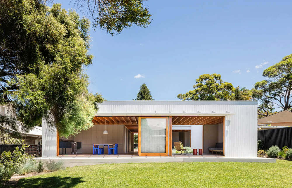 Garis-garis sederhana memungkiri desain yang dipertimbangkan dari rumah pantai ini dengan integrasi mulus antara kehidupan di dalam dan di luar ruangan. Bundeena House oleh Tribe Studio.