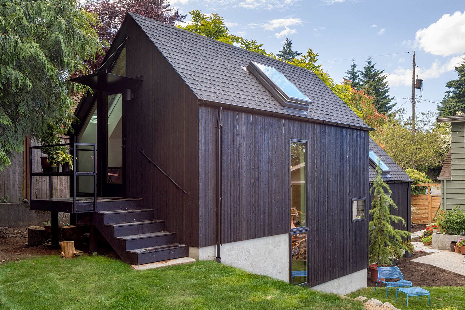 Desain Rumah Kecil ini dirancang oleh Best Practice Architecture menggantikan garasi lama dengan struktur baru yang dibalut warna hitam di bagian luar dan memiliki pengaruh putih dan kayu di bagian dalam. Cahaya membanjiri setiap sudut rumah berkat penggunaan jendela besar dan skylight yang meramaikan ruang tamu dengan ketinggian ganda.