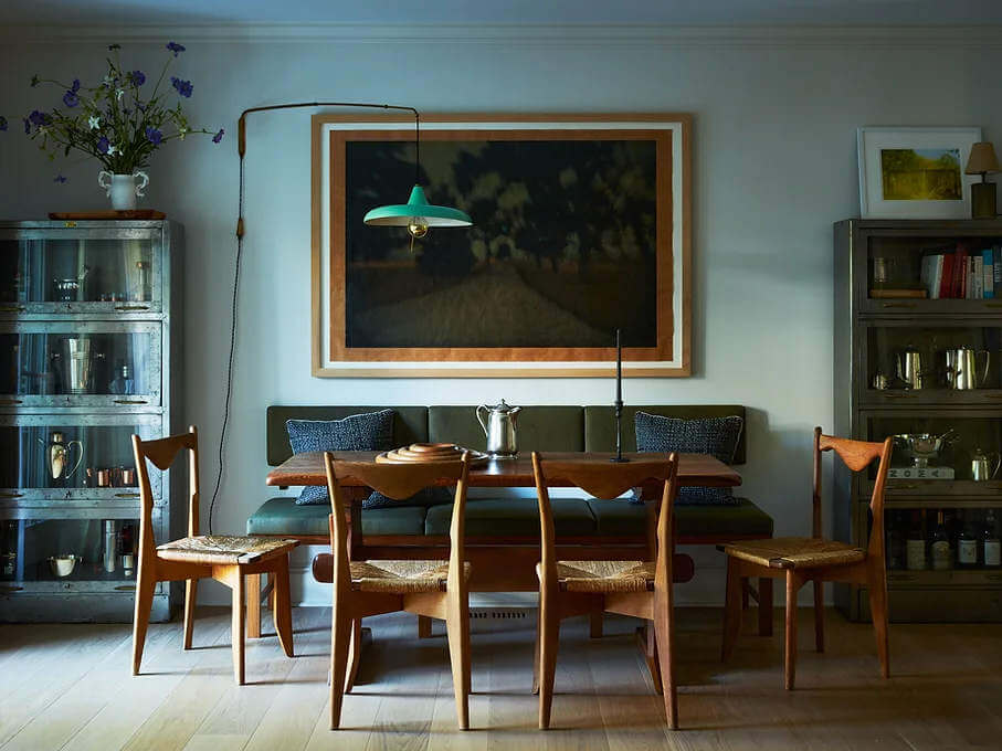 Kadang-kadang murung dan maskulin pada orang lain yang dipenuhi dengan cahaya lembut melalui tirai yang melayang di Greenwich Townhouse karya Kristin Fine dan Analisse Taft-Gersten dari The 1818 Collective ini adalah tempat perlindungan di kota yang ramai. Canggih namun ramah dengan furnitur dan seni yang dipilih dengan cermat.