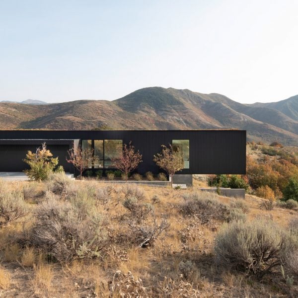 Studio lokal Sparano + Mooney Architecture menyangga dua amplop dengan kayu cedar yang dihitamkan di atas ngarai di luar Salt Lake City, Utah.