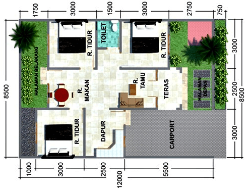 Denah Rumah 3 Kamar Ukuran 6×12 Terbaik Dan Terbaru Denah Rumah Desain Rumah Bungalow Desain Rumah Desa