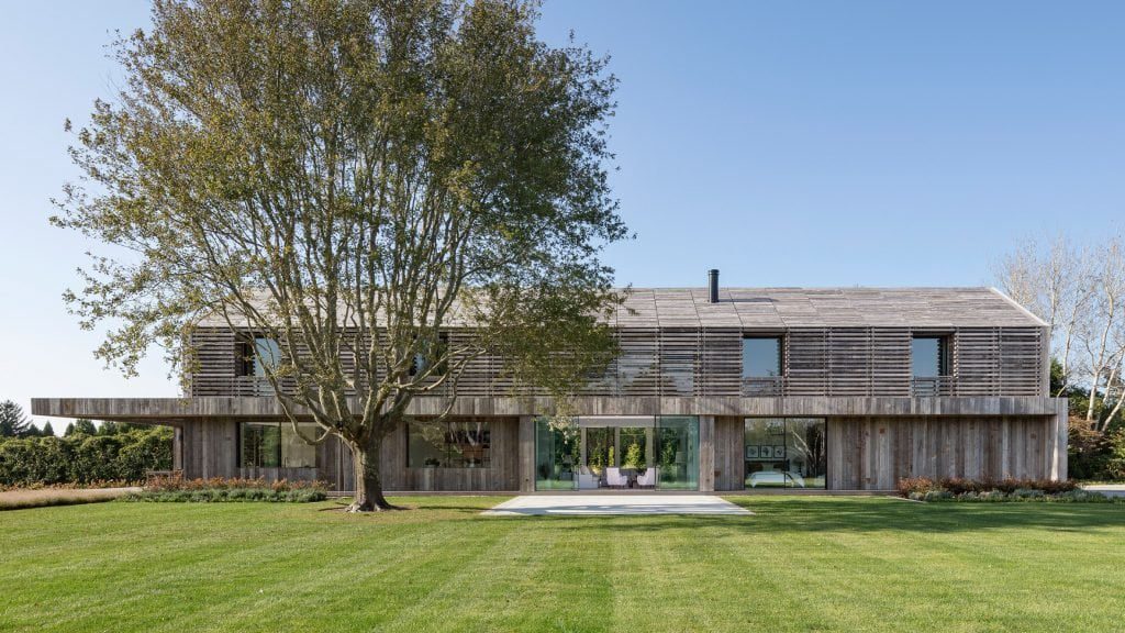 “Bahan eksterior tunggal dari lapisan kayu lapuk mencerminkan patina abadi yang mengingatkan pada lumbung dan bangunan luar di lanskap pedesaan,” kata Birdseye.
