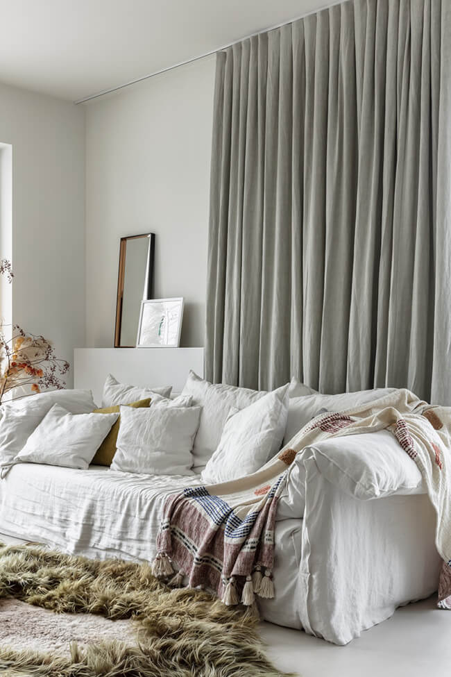Ketika minimalis itu seksi. Linen kusut, bulu palsu, marmer, tembaga merah, kristal, dinding hitam bertekstur, kuningan…. *Mendesah*. Apartemen Brussel dirancang oleh Studio. (Lihat fitur sebelumnya dari studio ini di sini dan di sini)