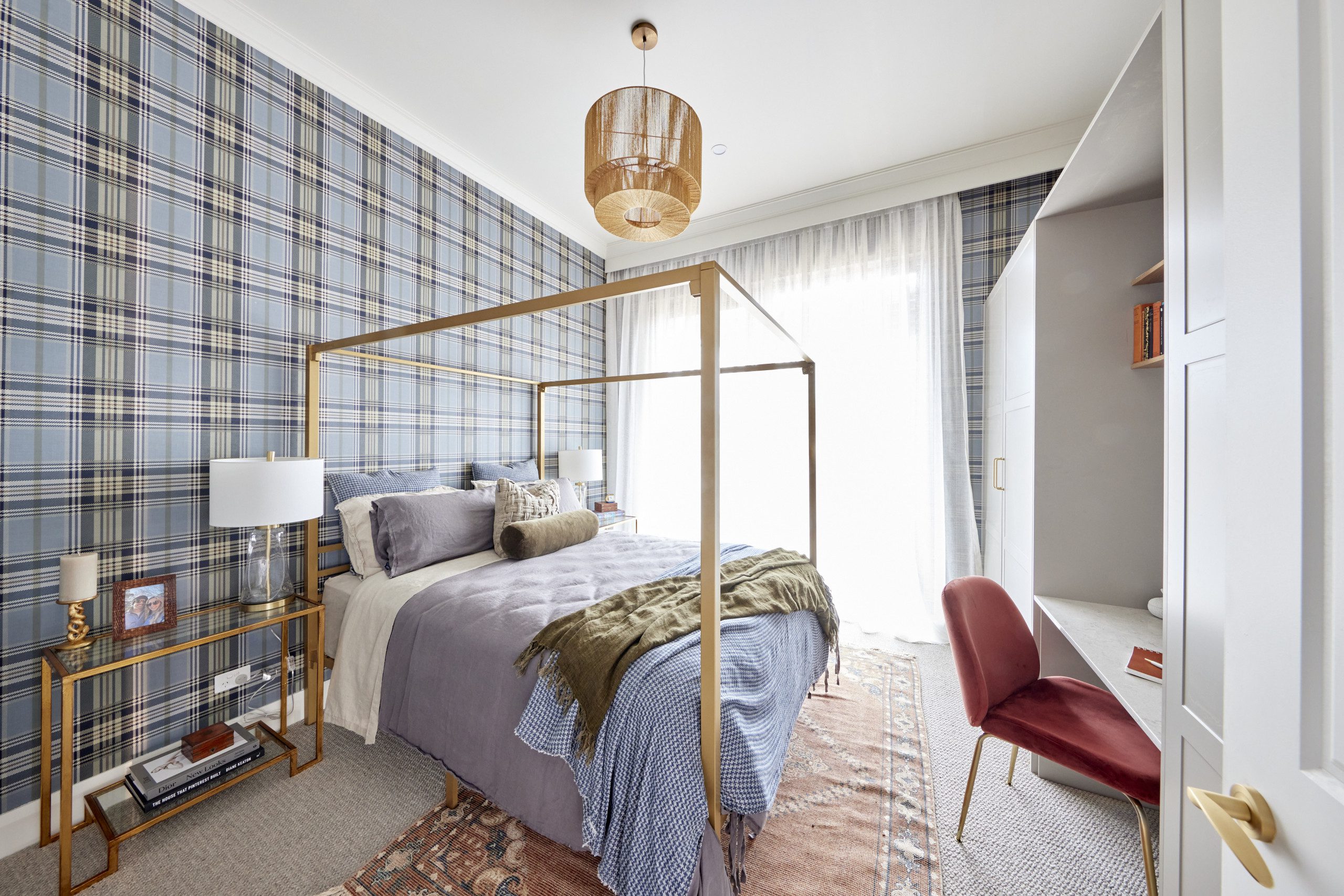 Dengan wallpaper tartan yang menonjolkan perpaduan eklektik dari karya seni, tirai tipis di balik pelmet terpisah dan lemari yang tertata rapi, kamar tidur Tom dan Sarah-Jane, kata Neale, menunjukkan pasangan itu “benar-benar bersenang-senang dan menciptakan rumah impian mereka”. Shaynna melangkah lebih jauh dengan mengatakan ini harus menjadi karir mereka setelah pertunjukan!
