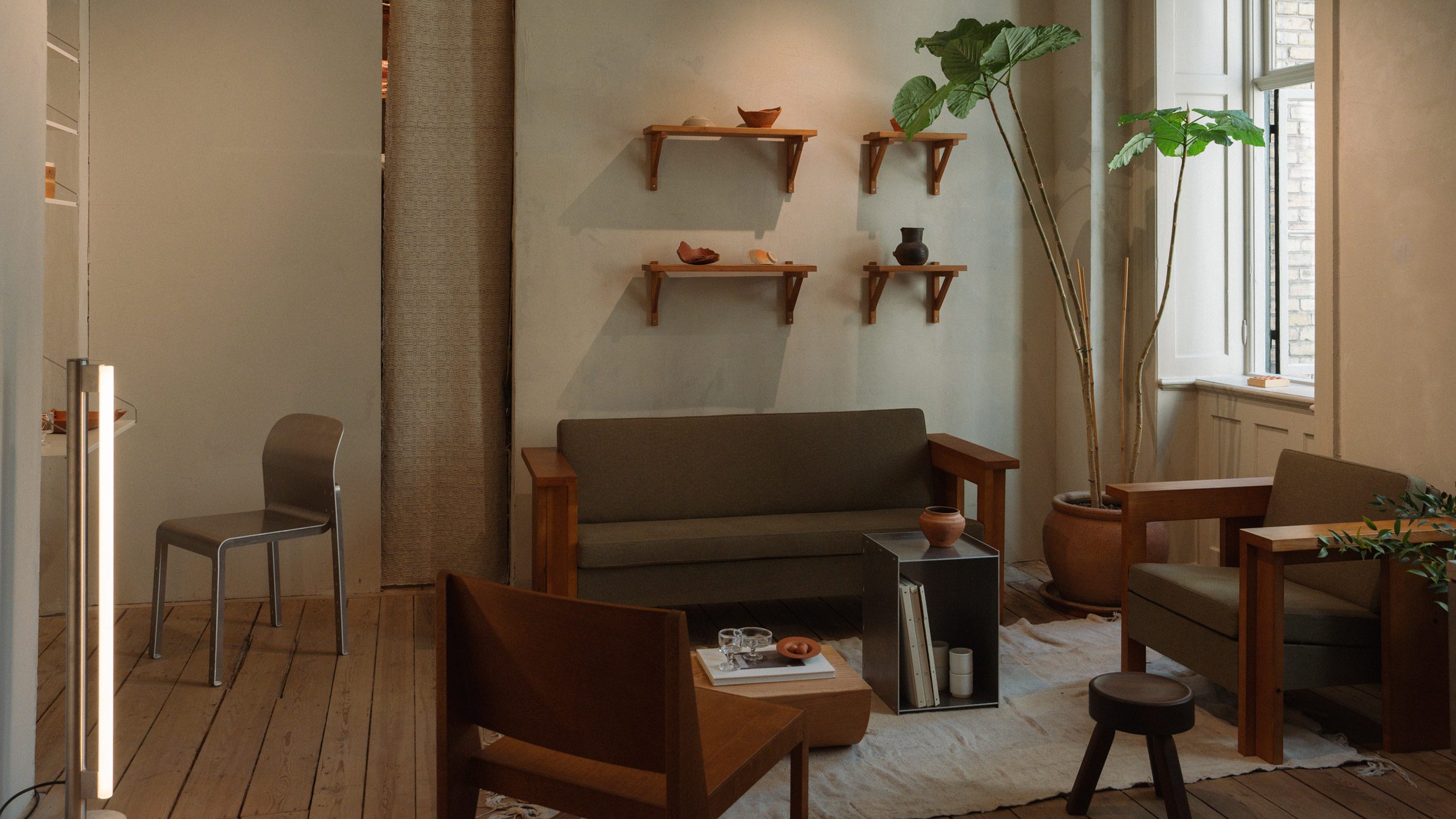 Kamar-kamar yang bersebelahan di Frama memamerkan penawaran furnitur dan peralatan rumah tangga terbaru dari merek tersebut.