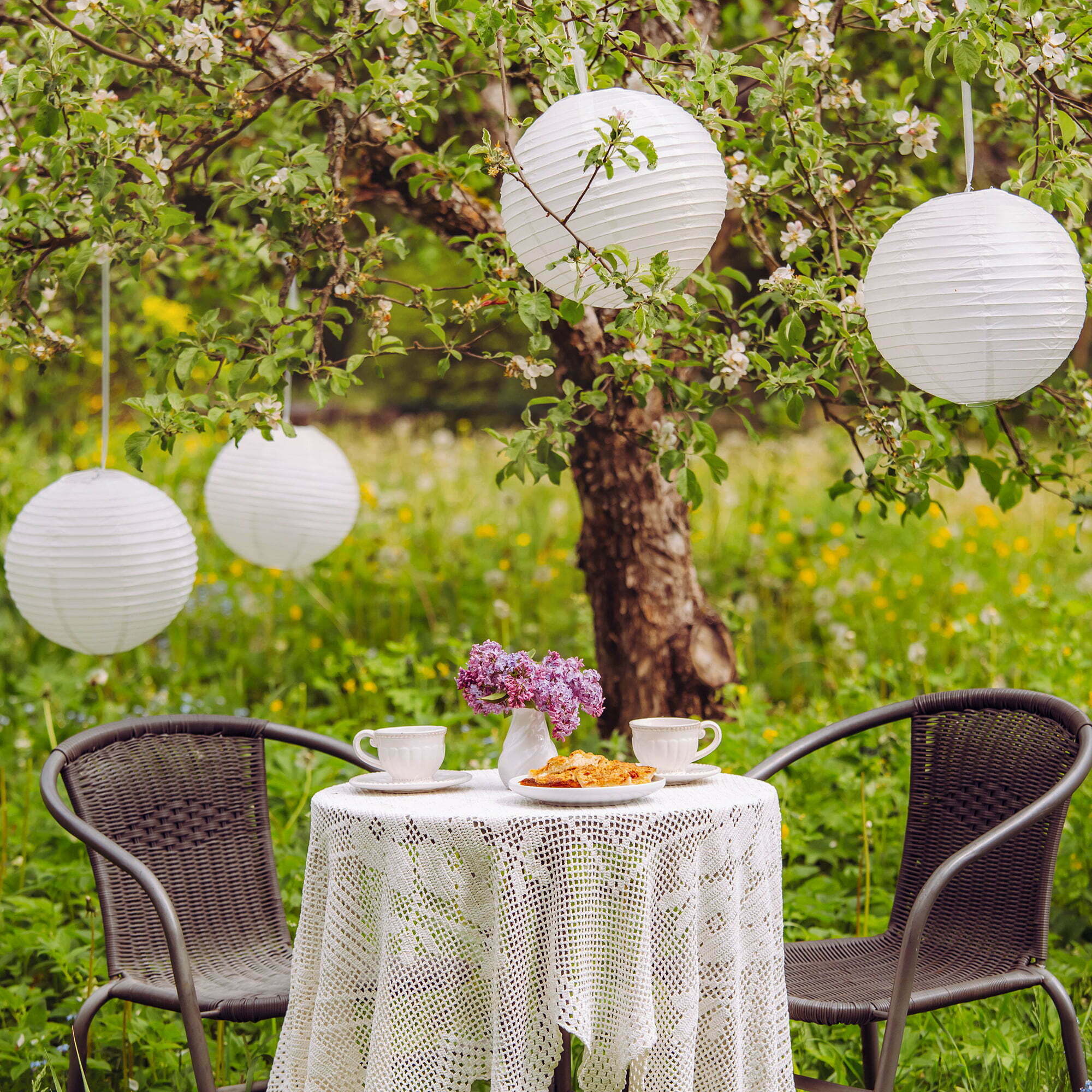 Tempatkan set bistro di bawah pohon favorit Anda, siap untuk menikmati teh sore di bawah sinar matahari. Ciptakan nuansa aneh dengan lampu lentera kertas – bahkan tanpa penerangan, lampu ini menambah suasana. Pilih desain yang bertenaga surya, sehingga saat cahaya memudar, lentera memancarkan cahaya lembut yang indah, sempurna untuk bersantai.