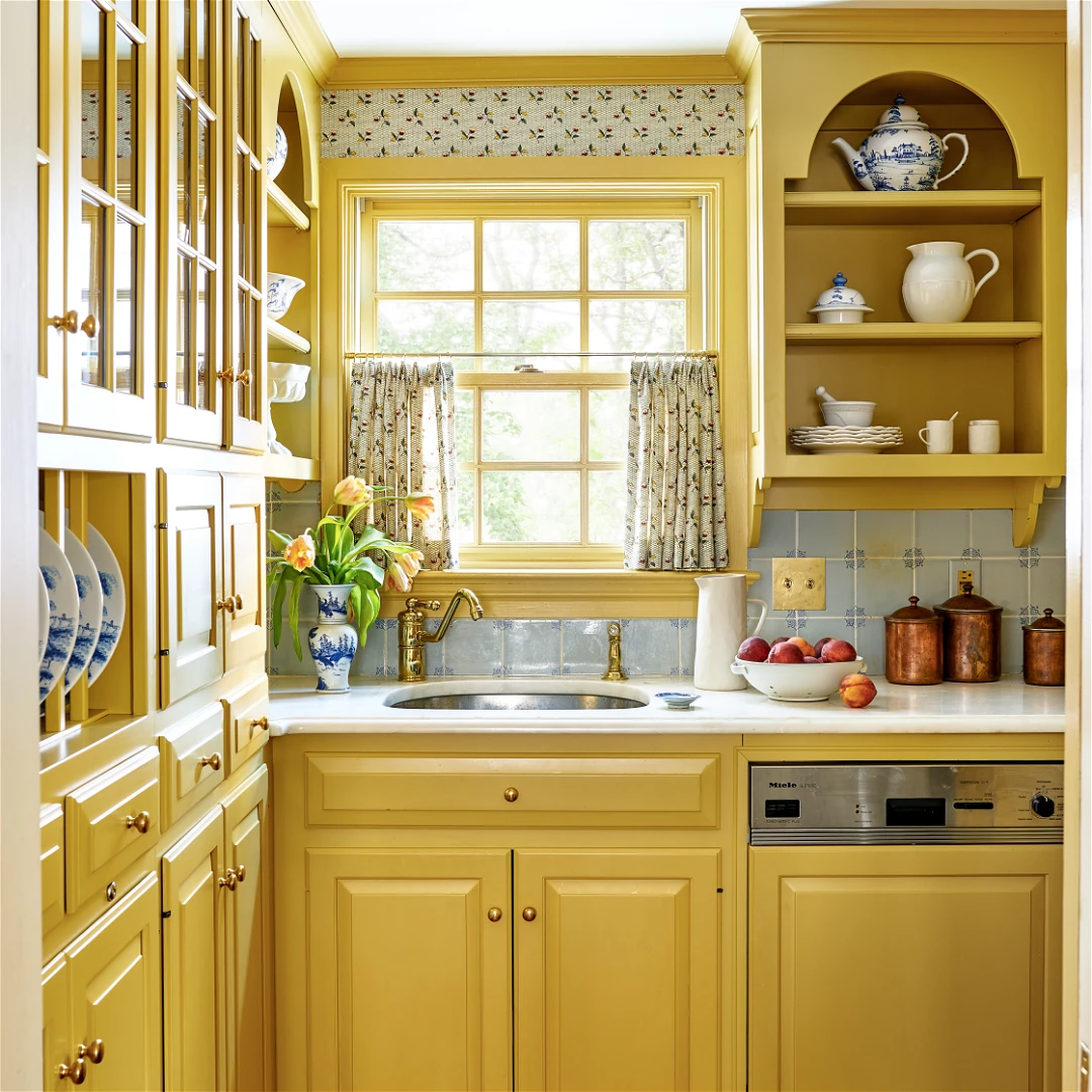 Jika Anda ingin menciptakan suasana yang mengundang dan ceria di dapur Anda, warna kuning lembut adalah pilihan yang sempurna. Ini adalah warna yang terang dan halus yang berpotensi membuat dapur apa pun terasa lebih cerah dan lebih membangkitkan semangat. Kuning mellow tidak hanya memiliki kualitas menenangkan yang pasti akan membuat semua orang merasa nyaman selama waktu makan, tetapi juga memberikan latar belakang yang sempurna untuk menonjolkan warna yang lebih kaya yang dapat digunakan di tempat lain di ruangan – seperti tirai cerah atau aksesori meja. Dari dapur pedesaan yang nyaman hingga ruang terbuka modern, dapur kuning lembut menciptakan suasana menyenangkan yang membuat Anda ingin tinggal sebentar!