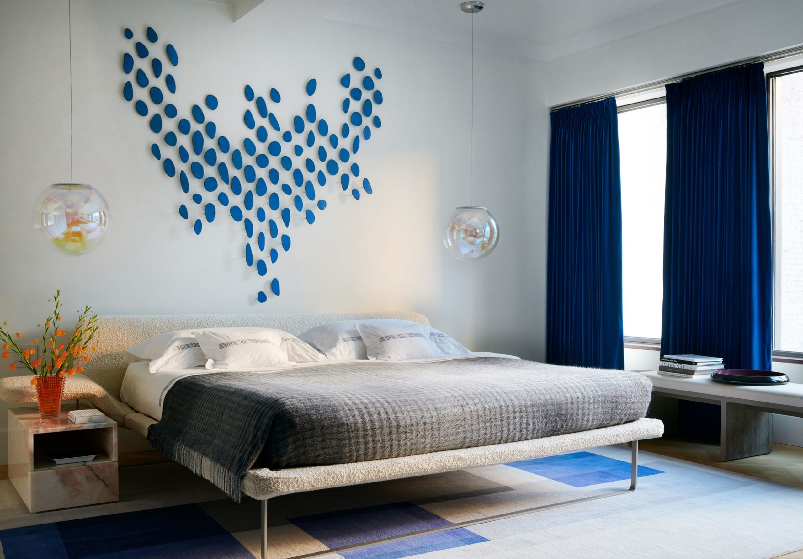 Karya seni adalah bagian penting dari setiap skema desain interior. Ini menambah warna dan kehidupan ke ruangan mana pun dan memberinya karakter. Kamar tidur tidak terkecuali — karya seni dapat menambahkan kepribadian ke ruang yang membosankan. Pikirkan tentang karya seni favorit Anda dan yang ingin Anda pajang di kamar tidur Anda. Anda dapat menggantungnya di dinding atau di atas tempat tidur jika Anda memiliki ruang dinding yang cukup.