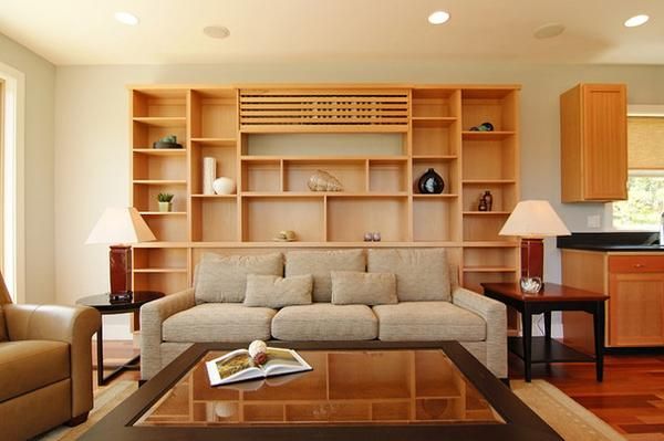 Cara yang bagus untuk Menggabungkan AC adalah dengan meletakkannya di rak buku terbuka. Integrasikan AC dengan menempatkannya pada sesuatu yang sudah menonjolkan dekorasi ruangan. Untuk memastikan AC tidak terlihat saat tidak digunakan, pasang pintu di depannya yang hanya dibuka saat ingin menyalakan AC.