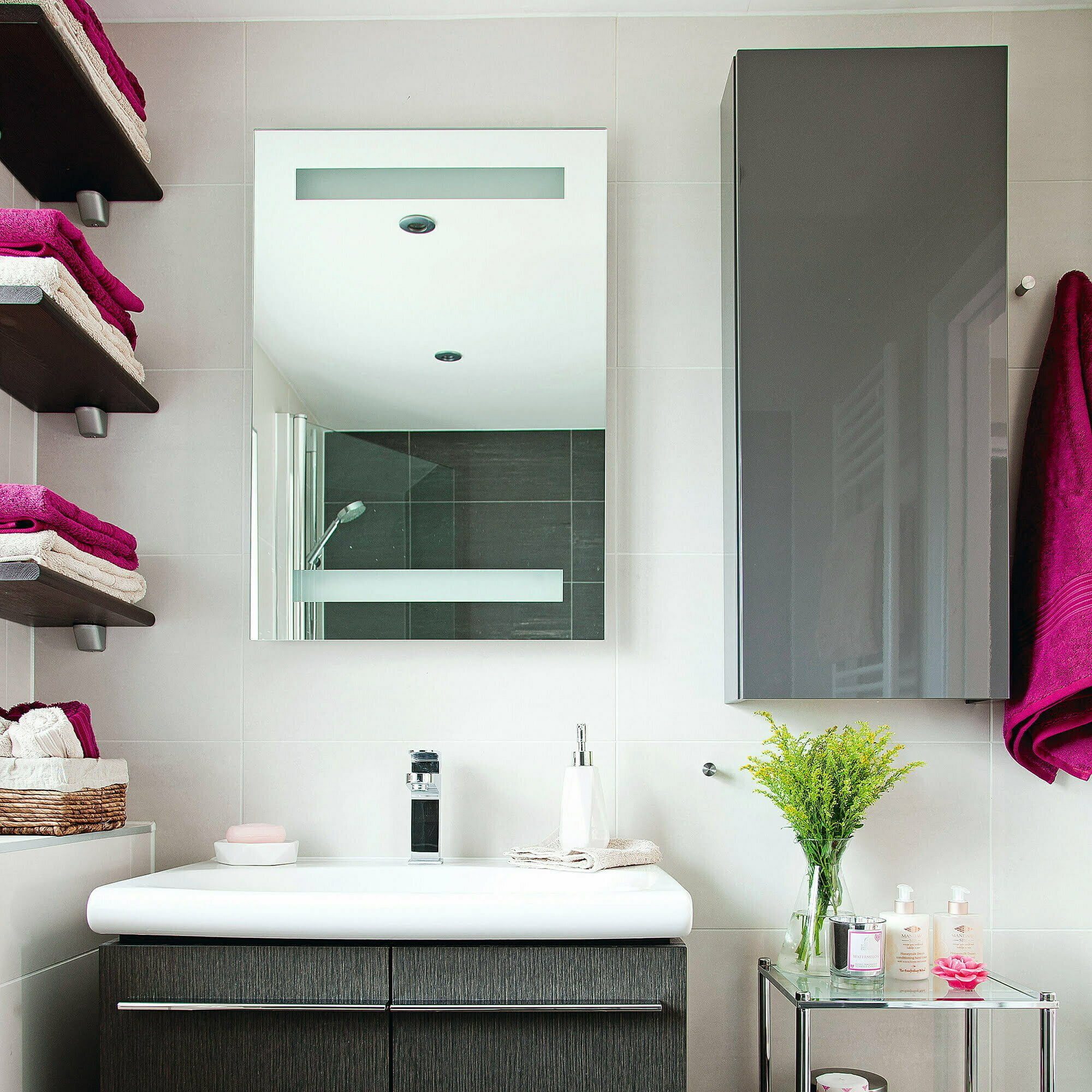 Jika uap menjadi masalah di kamar mandi kecil – terutama jika tidak berjendela – maka belilah lampu cermin yang dilengkapi dengan bantalan demister. Ini membantu Anda bersiap-siap tanpa kabut dari cermin yang dikukus.