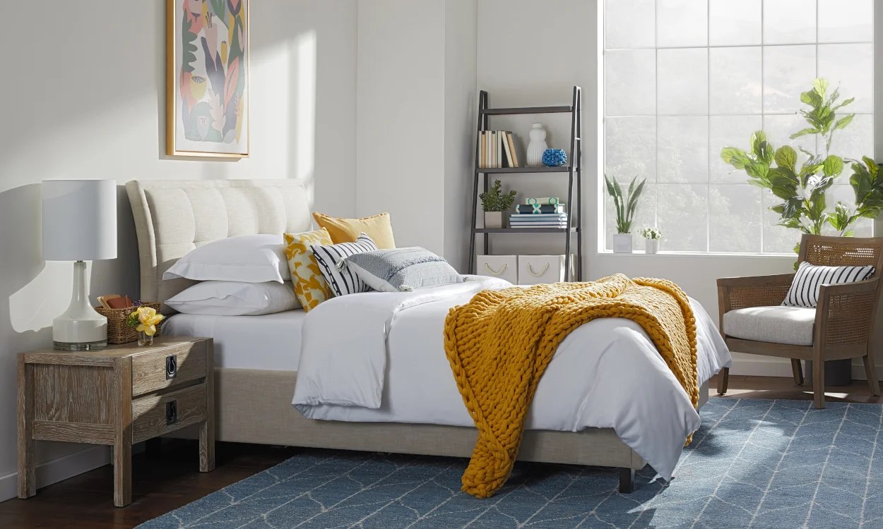 Saatnya memperbarui warna tempat tidur Anda jika Anda sering menggunakan warna oranye tua, merah dan hitam. Seprai ringan dalam nuansa ceria seperti putih, hijau muda, biru langit, atau kuning cerah memberi ruangan Anda kesegaran musim panas yang lapang. Selain itu, seprai dan selimut berwarna lebih terang tidak menyerap banyak panas di siang hari, membuat Anda tetap sejuk saat waktunya tidur.