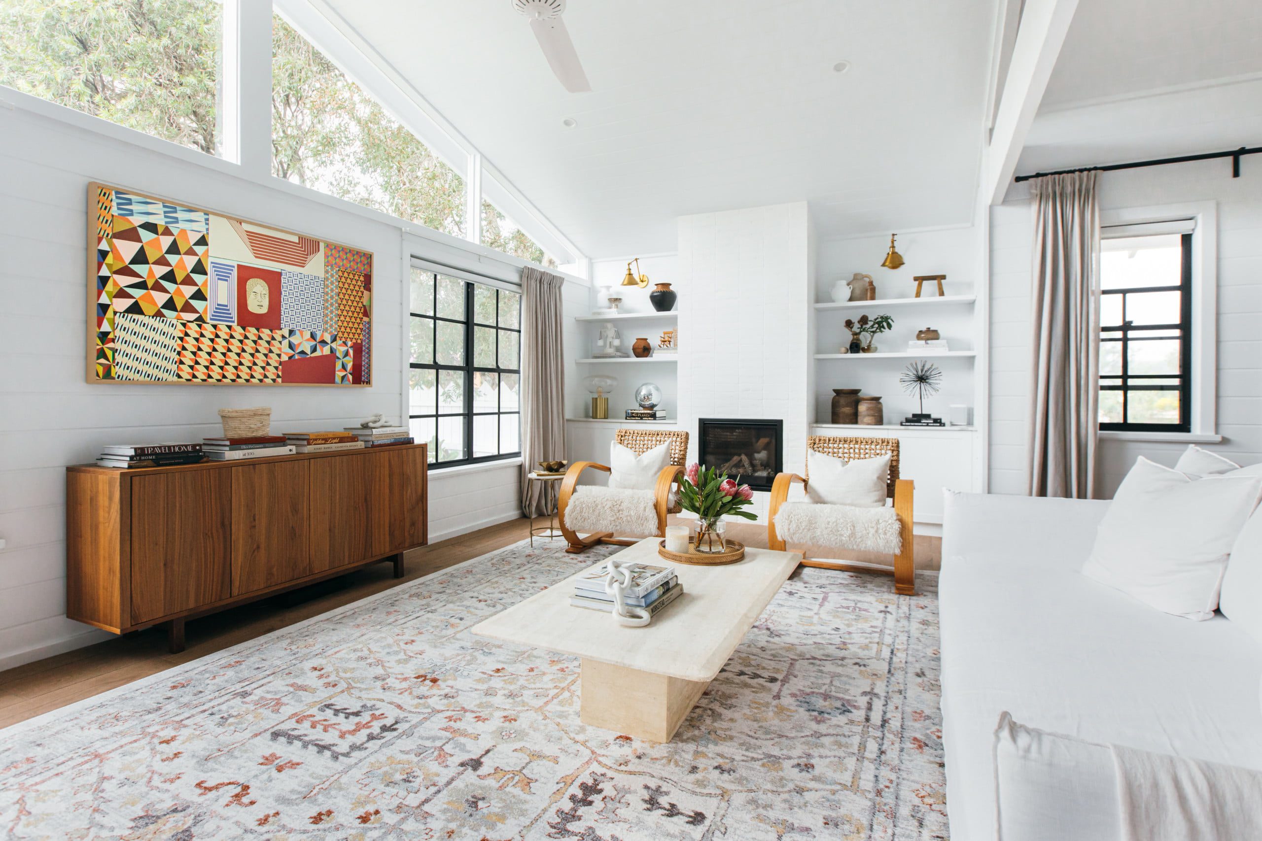 Ketika datang ke inspirasi, itu harus selalu dimulai dengan rumah itu sendiri sebagai dasarnya. Setelah membeli ini, rumah pertamanya, Shaye mengasah detail pondok dan pergi dari sana, membuka dapur, ruang tamu dan ruang makan untuk membuat satu ruangan besar. Dengan tujuan mempertahankan suasana yang nyaman dan intim, dia kemudian memadukan dan mencocokkan furnitur, melapisi permadani, dan memastikan tidak ada yang terlalu terkoordinasi.