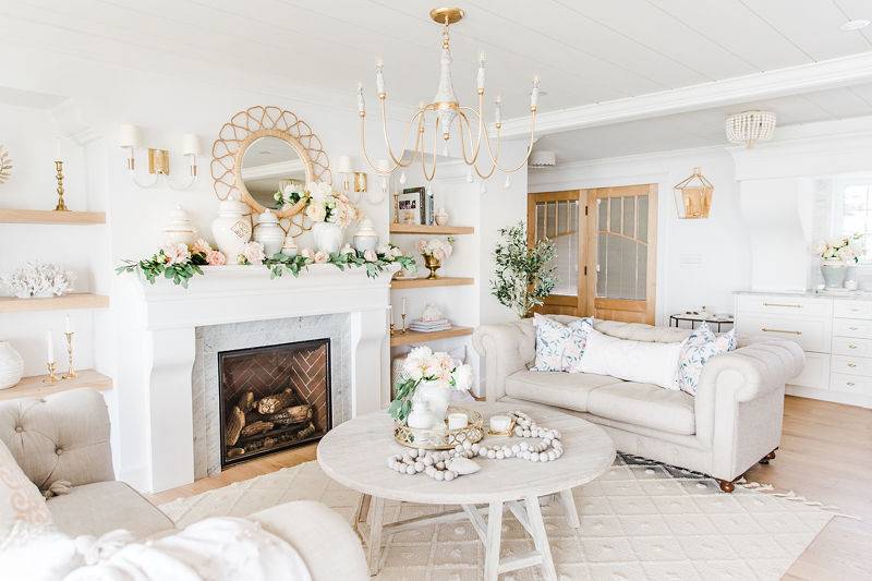 Menyatukan elemen dekorasi musiman dengan gaya Anda yang biasanya elegan lebih mudah dari yang Anda pikirkan—atau setidaknya Leslie Style membuatnya terlihat mudah dengan ruang tamunya! Aksen putih, kayu, dan emas mendominasi ruang tamu. Bunga-bunga dan manik-manik kayu menambahkan sentuhan akhir yang sesuai dengan gaya.