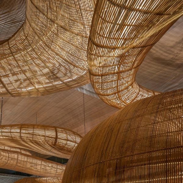 Enter Projects Asia secara teratur bekerja dengan pohon rotan, yang merupakan sumber daya alam yang melimpah di wilayah tersebut. Sebelumnya, studio ini memproduksi instalasi anyaman pahatan serupa untuk kantor dan gedung pabrik di Waregem, Belgia.
