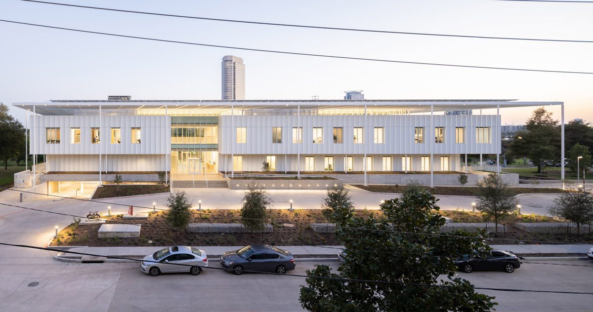Kevin Daly membuat bangunan putih dengan kanopi untuk Houston Endowment