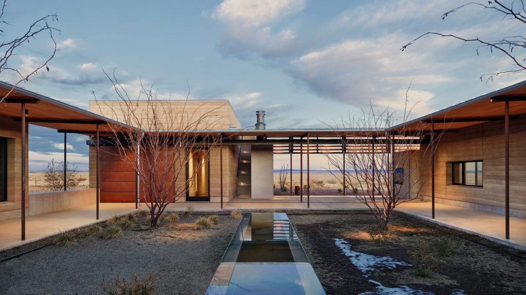 Studio arsitektur Amerika Lake Flato telah menciptakan sebuah rumah peternakan dari tanah yang ditabrak di padang rumput gurun Texas bernama Marfa Ranch.