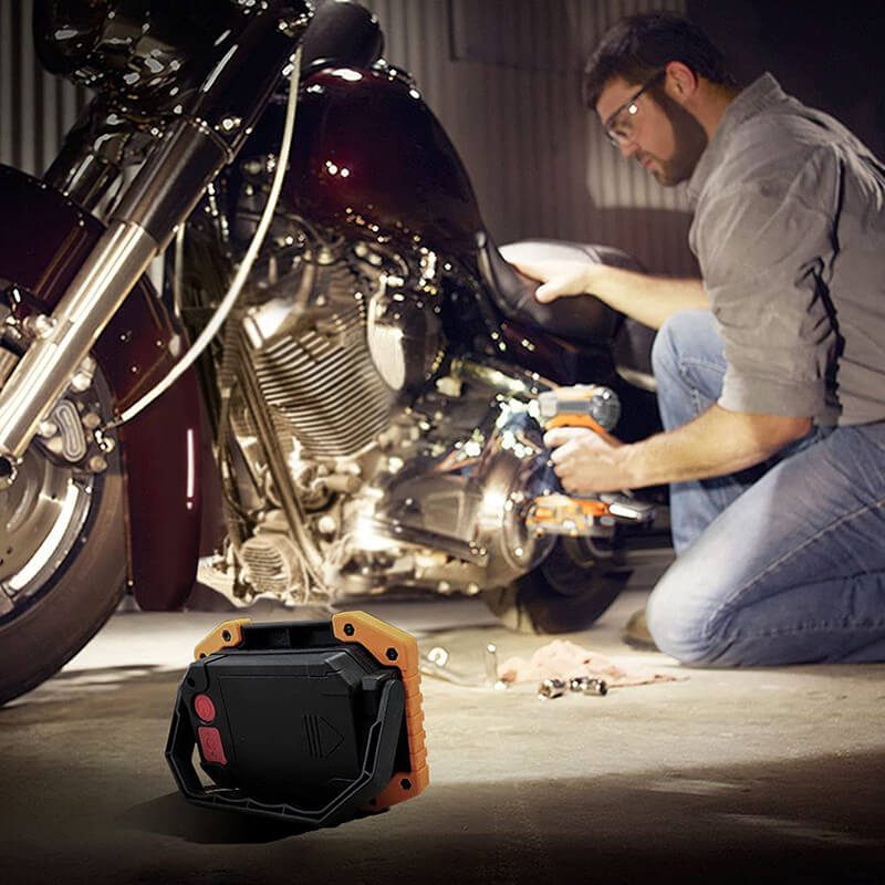 Beberapa tempat kerja mungkin juga memerlukan lampu kerja yang terlindung dari elemen seperti debu atau air agar berfungsi dengan baik. Yakinlah bahwa produk kami melakukannya dengan baik. Pegangan dasar magnet yang kuat memungkinkan lampu kerja nirkabel dipasang ke permukaan logam untuk penggunaan hands-free. Gantung di dinding, mobil, atau dudukan lampu untuk menerangi studio Anda secara efektif. Anda juga dapat menggunakannya untuk mengisi daya perangkat bertenaga USB dalam keadaan darurat.