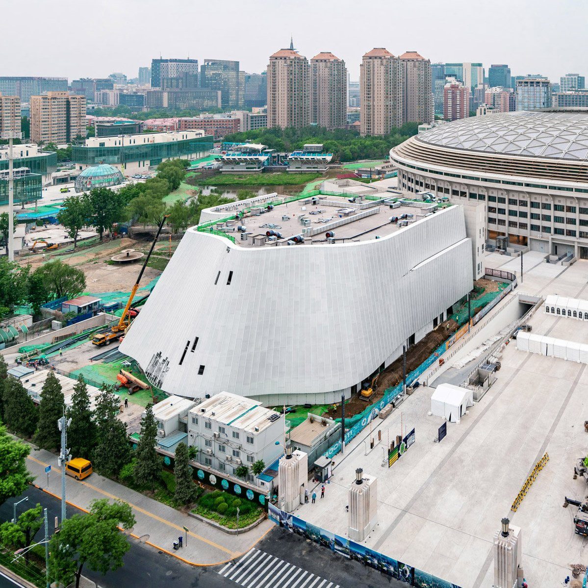 Fasad China Philharmonic Concert Hall yang tembus pandang dan bergelombang oleh MAD terungkap dalam foto-foto konstruksi ini, yang menangkap bangunan yang hampir selesai dibangun di Beijing.