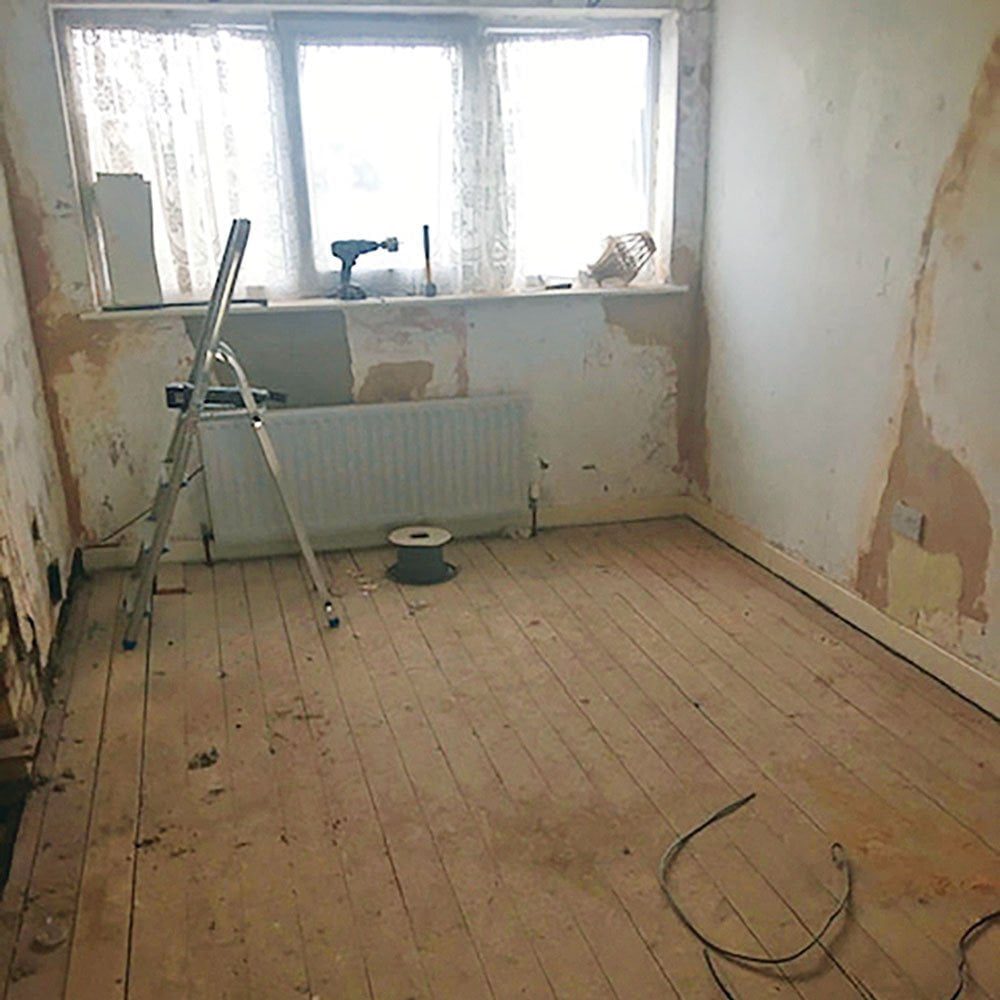 Pemilik rumah ini dan suaminya, Scott, mulai mengubah kamar tidur di rumah semi-terpisah mereka menjadi kamar mandi dalam yang luas.
