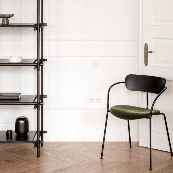 Fitur dekorasi Paris berkembang di seluruh apartemen di Kyiv ini, dilengkapi dengan ruang tamu hitam-putih oleh desainer Ukraina Anastasiia Novikova.