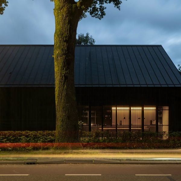 Praktik Belanda Studio Space Architecten telah berkolaborasi dengan firma desain lokal Studio REDD untuk membuat ruang kantor bersama mereka sendiri di Belanda, dengan bentuk seperti lumbung yang dilapisi kayu bernoda hitam.