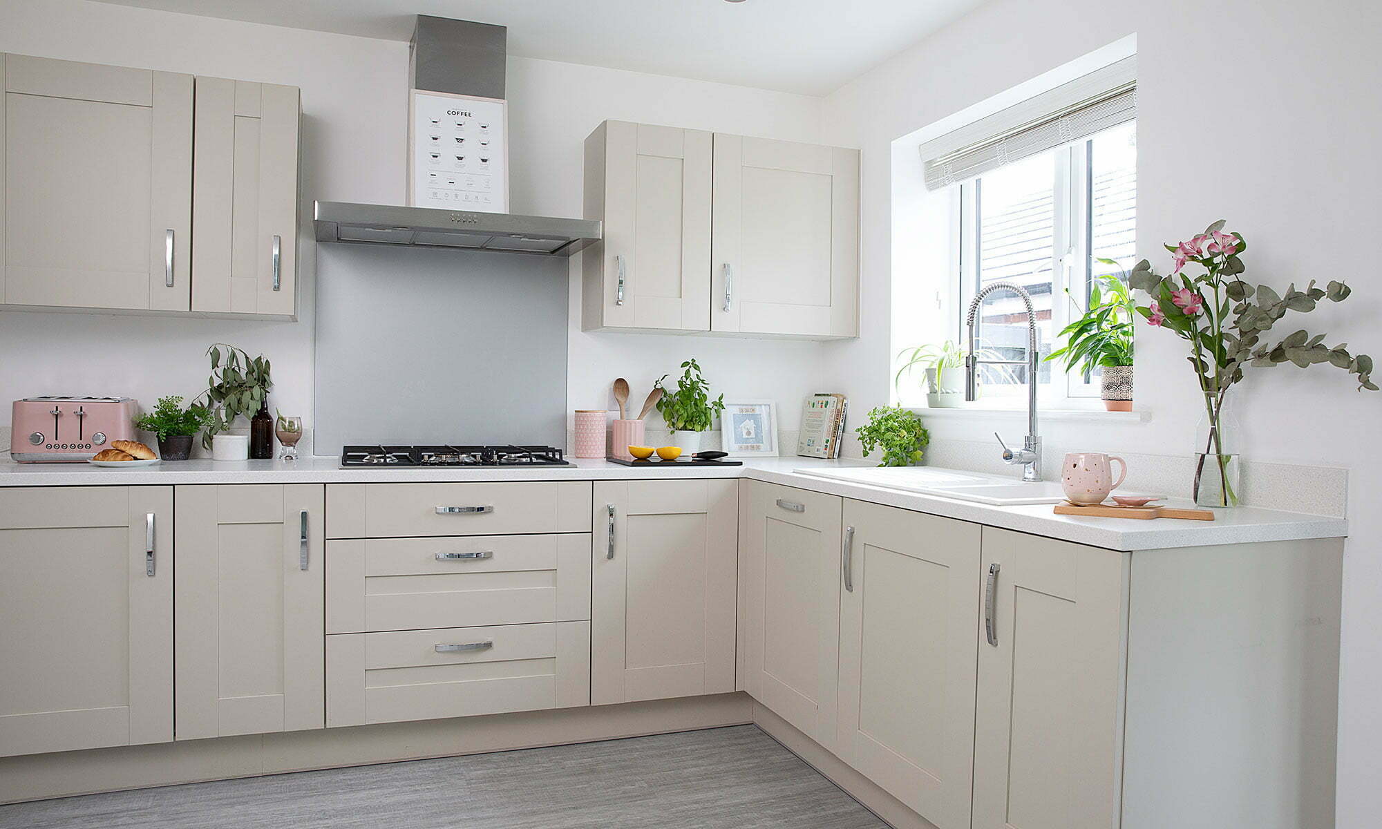‘Kami senang dengan lemari yang dipilih pengembang, tetapi kami mungkin menambahkan pulau atau bar sarapan di masa mendatang,’ kata pemiliknya kepada kami.