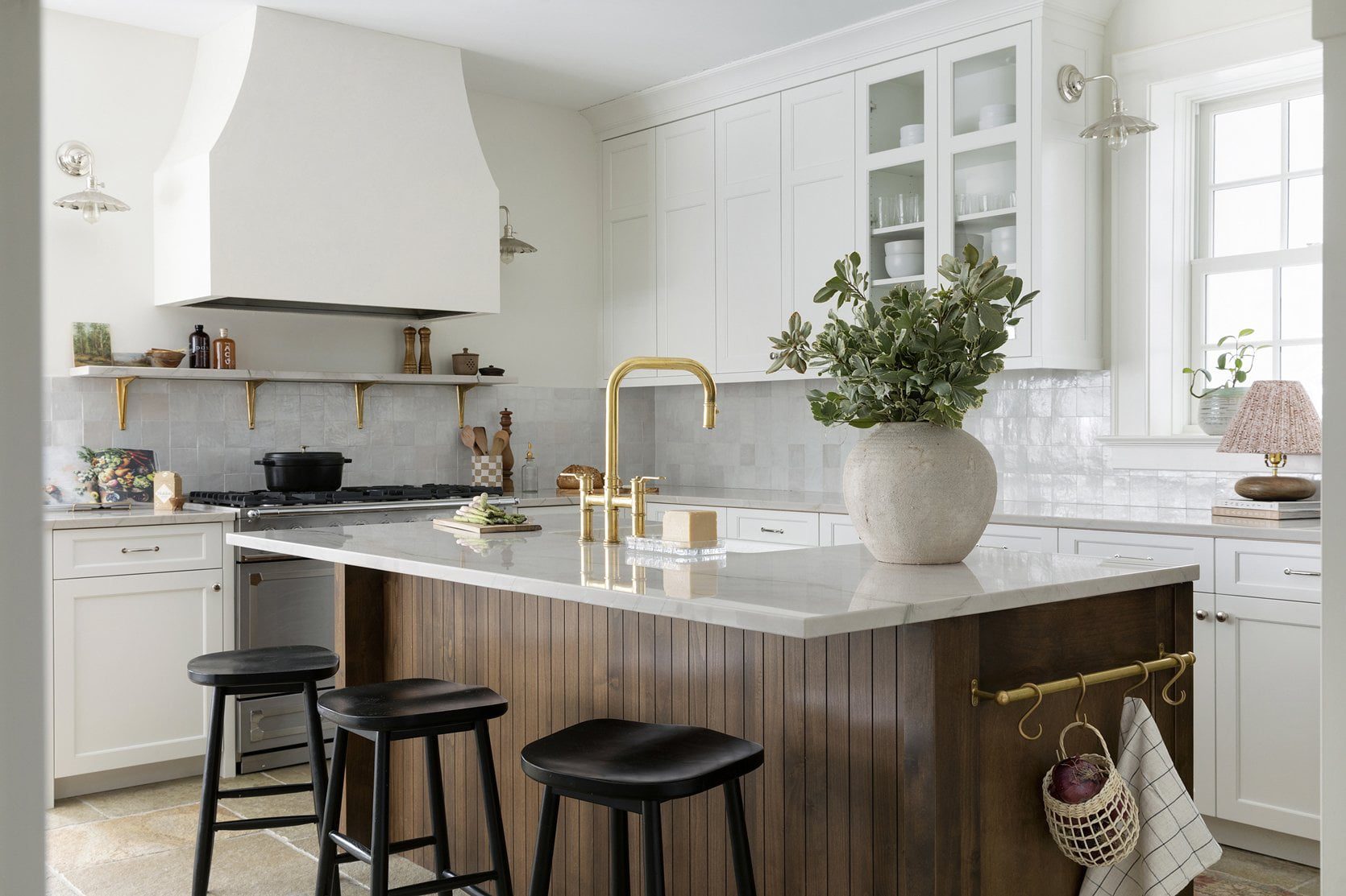 Pemilik rumah benar-benar menginginkan dapur serba putih dan sekali lagi percaya pada tim desain, mereka akhirnya memilih warna perimeter yang lebih lembut dengan pulau kayu alder kaya yang kontras dengan detail panel garitan yang indah. Ketika saya masuk, saya langsung jatuh cinta dengan warna putih yang lebih lembut yang mereka pilih bersama dengan kayu cantik di pulau itu dan kap ventilasi yang dibingkai dan diplester.