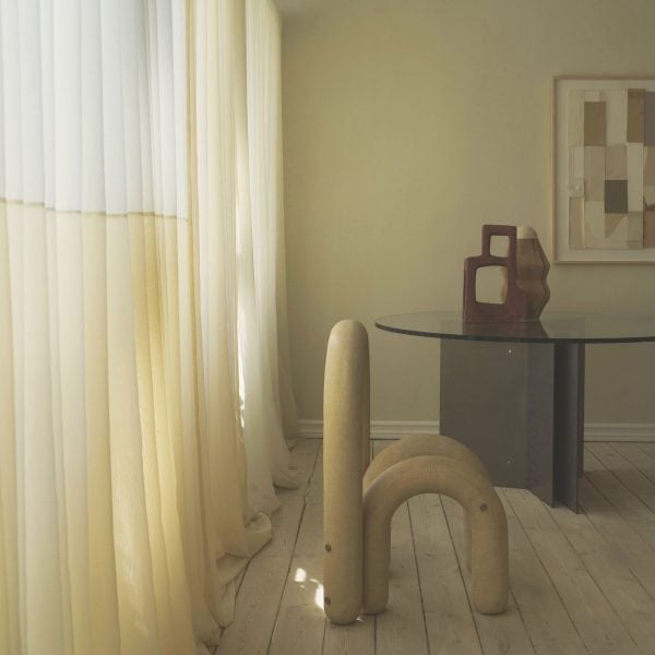 Potongan penting lainnya termasuk lampu gantung minimal oleh Kasper Kjeldgaard dan tekstil tenun oleh Bettina Nelson.