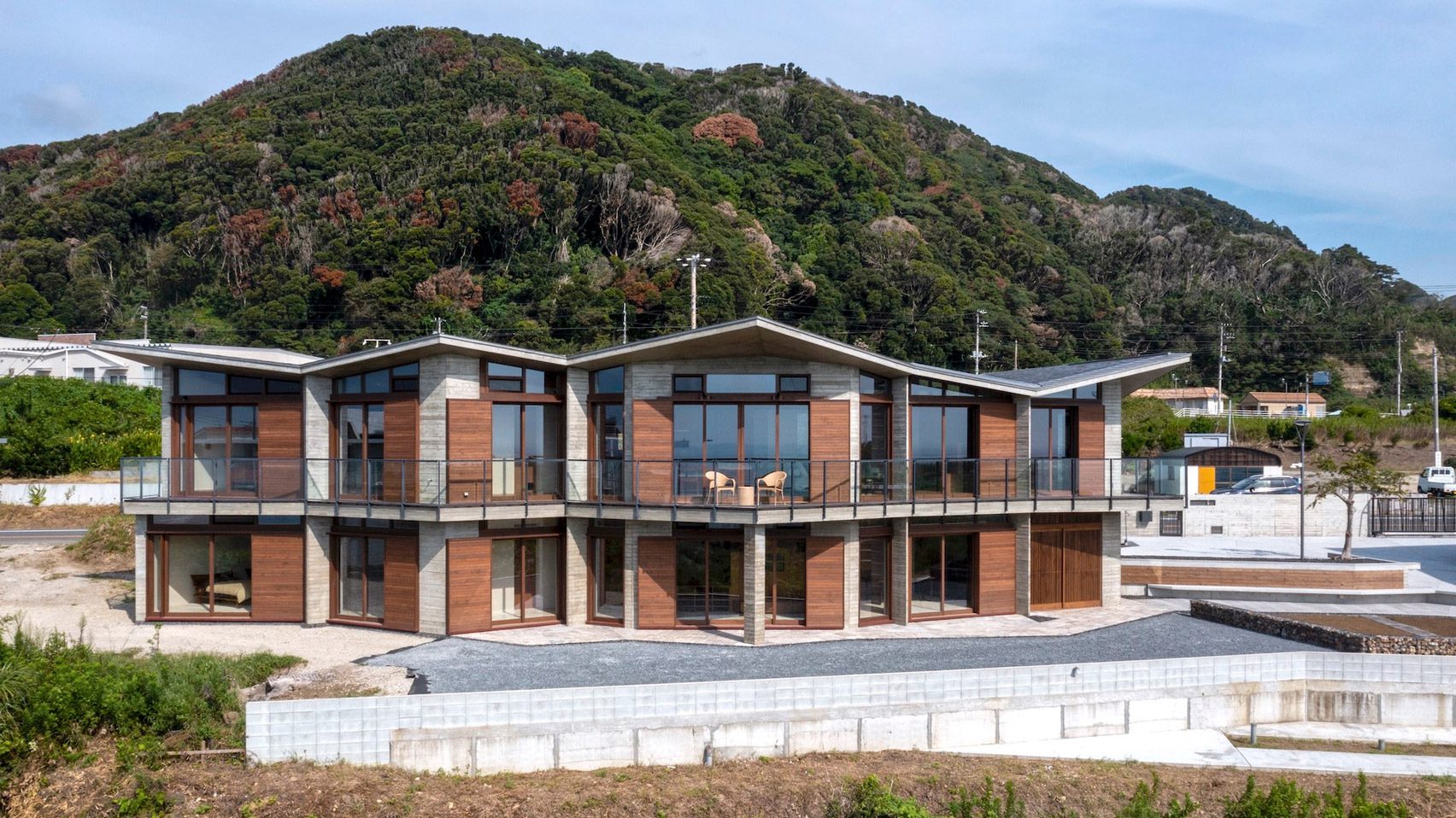 Terletak di Kota Minamiboso, Jepang, denah rumah liburan terdiri dari pengaturan volume segitiga yang saling terkait dengan atap bersudut.