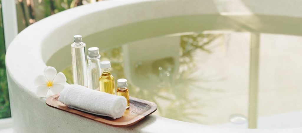 Aromaterapi bisa menjadi alat yang ampuh untuk menciptakan rasa relaksasi di kamar mandi Anda. Pilih lilin, diffuser, atau semprotan dengan aroma seperti lavendel atau kayu putih, yang menawarkan khasiat yang membantu menenangkan dan merilekskan tubuh dan pikiran. Ide lain yang efektif (dan sangat sederhana) adalah menambahkan minyak esensial ke air mandi Anda untuk menciptakan pengalaman seperti spa di rumah.
